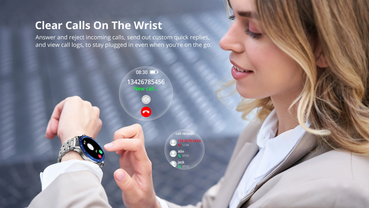 Clear Calls on the Wrist: Answer/reject calls, access call logs, and quick replies directly.